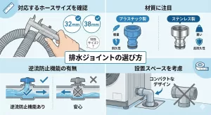排水ジョイントを選ぶ際には、以下の点を確認しましょう。